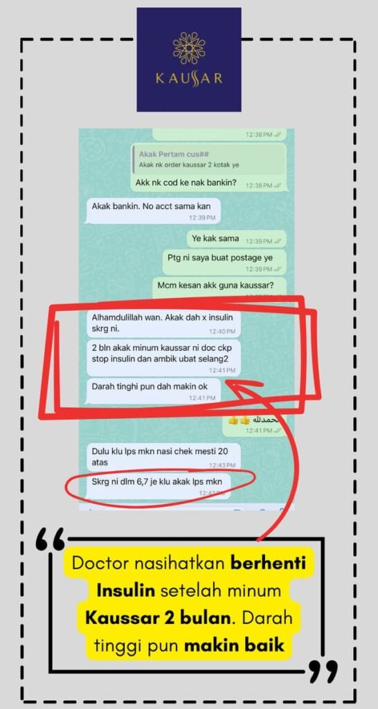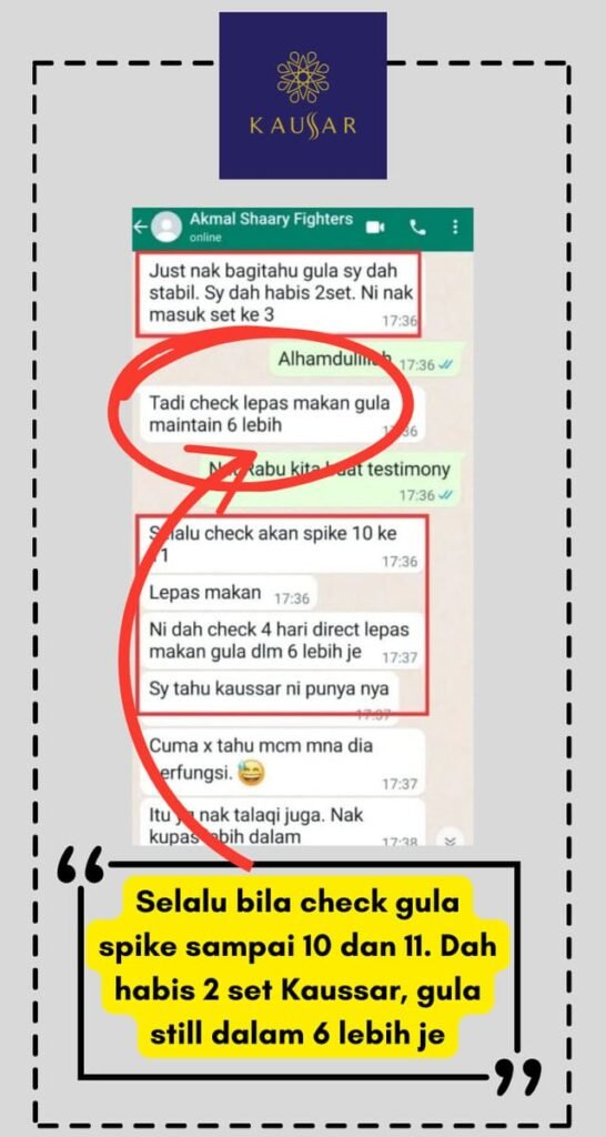 Bukan sahaja Kaussar membantu untuk turun dan stabilkan bacaan gula secara semulajadi.