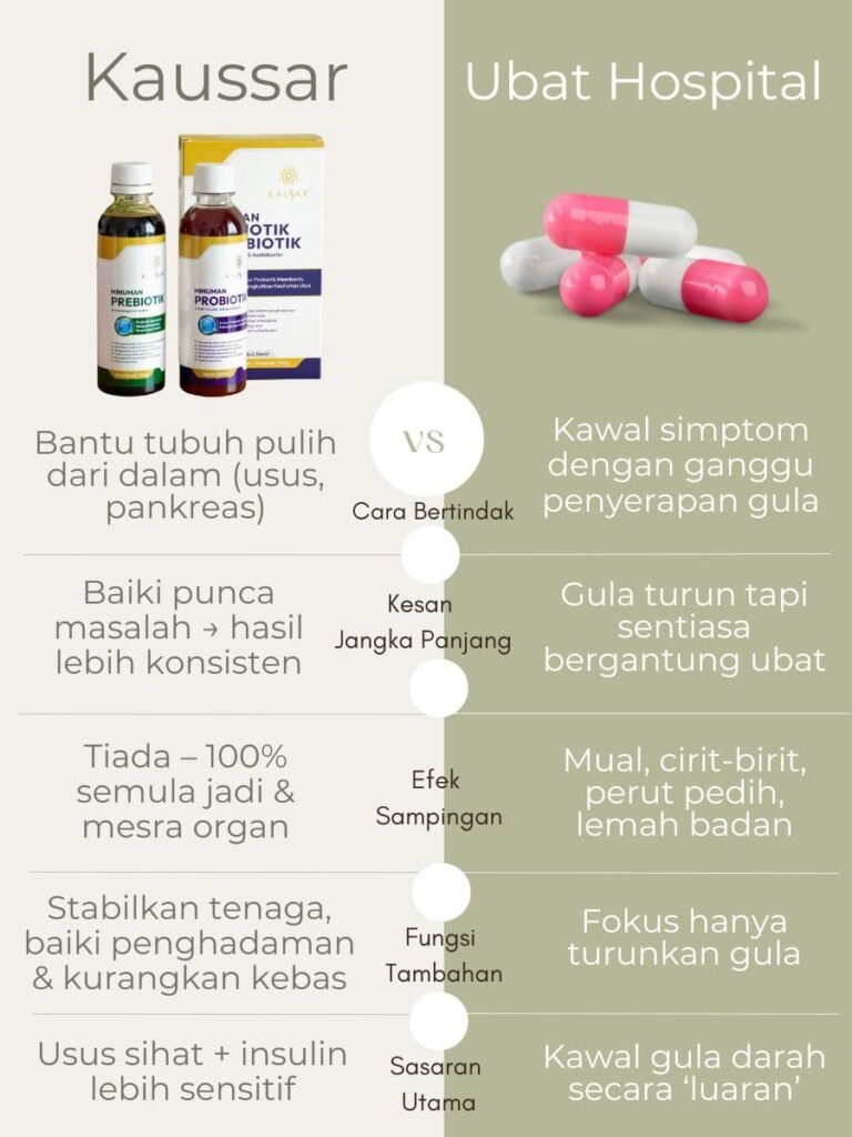 ✅ Pulihkan sistem penghadaman → usus sihat, zat & gula diserap dengan baik