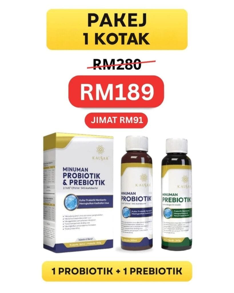 1 botol 260ml probiotik. 1 botol 260ml prebiotik