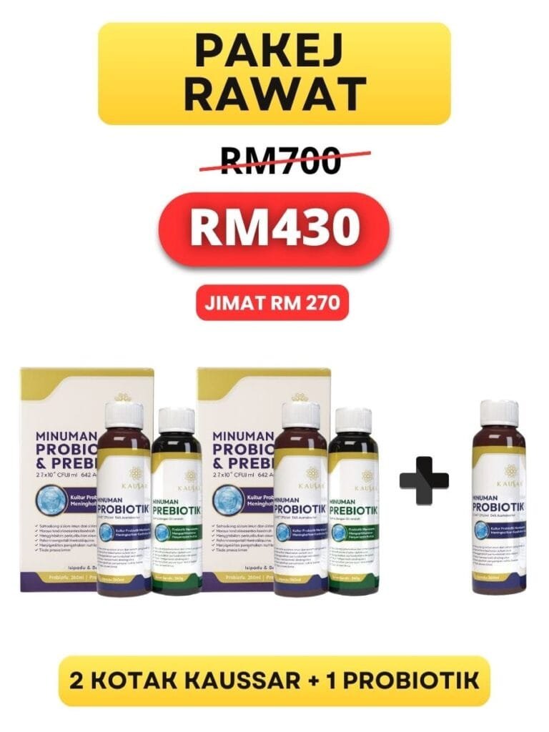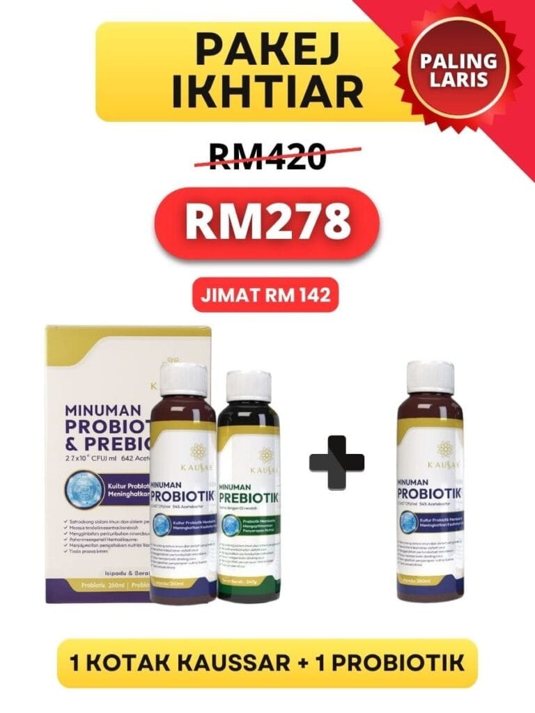 Dalam 1 kotak Kaussar ada prebiotik dan probiotik.