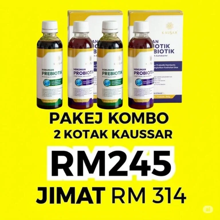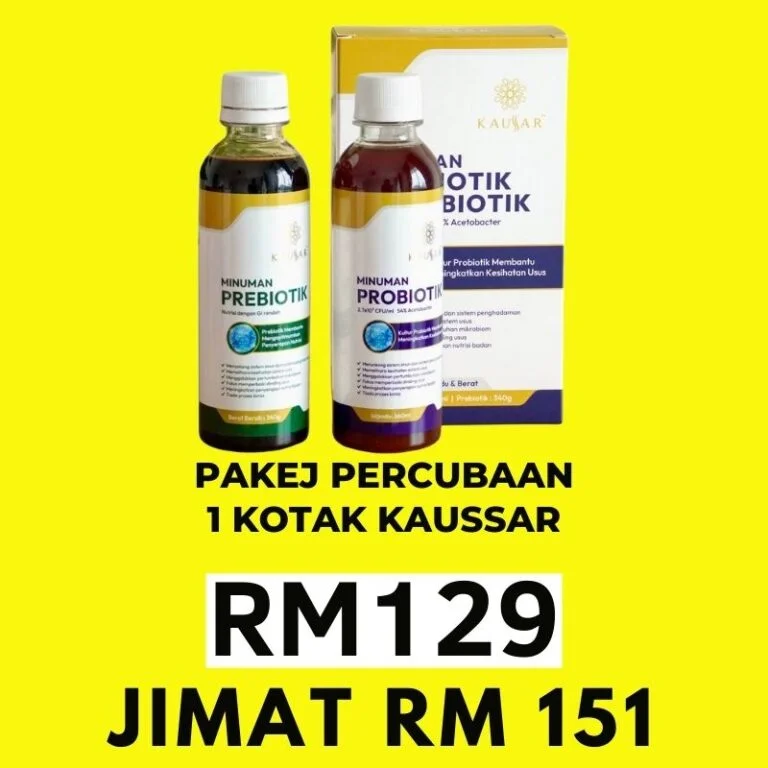 Polisi Pemulangan Wang: Pulangan Wang Akan Diberikan Sekiranya Tiada Sebarang Perubahan Setelah 60 Hari Amalkan KAUSSAR Secara Konsisten & Amalkan Sekurang-Kurangnya 1 Cup Prebiotik, 1 Cup Probiotik sehari.
